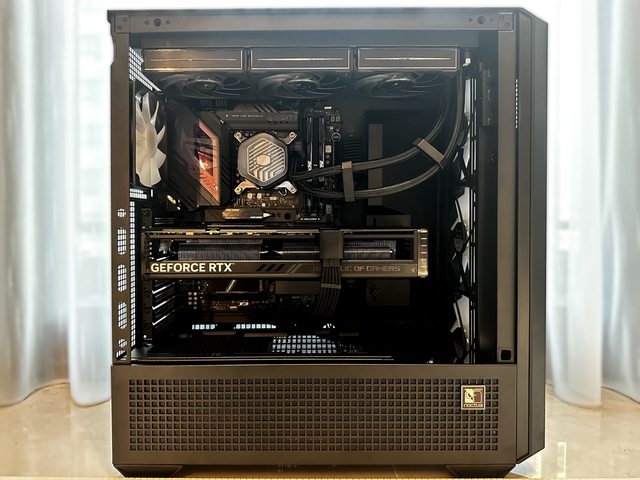 拆掉玻璃側板比較好展示,燈效也改為黑色機殼常搭配的橘色定色光。