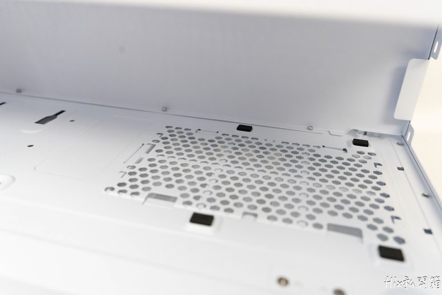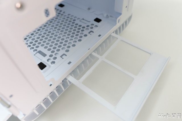 前面板下方單純就是用個簡單的卡榫扣上,搭配上磁鐵吸附作整塊進風面板的固定