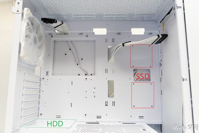 背板出線口旁有兩個位置(紅圈處)可裝SSD