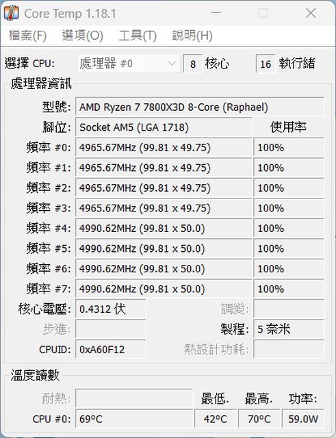 對 AMD Ryzen™ 7 7800X3D 的溫度測試