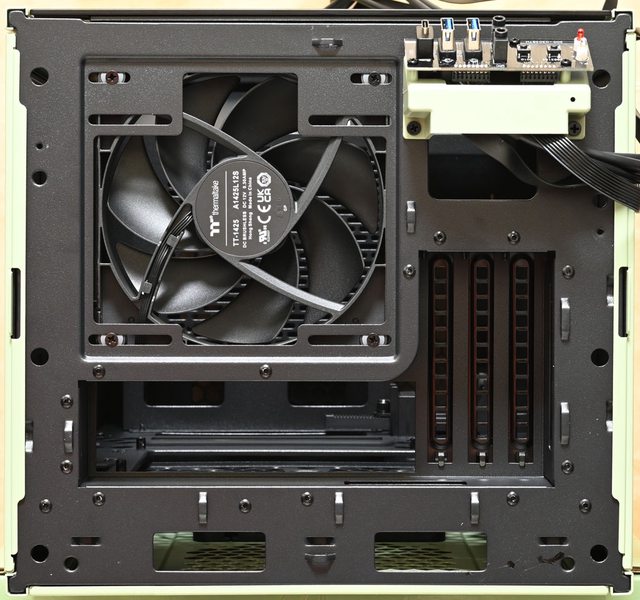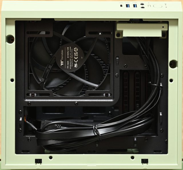 冷排可裝到140mm,預裝1個CT140風扇。主機板後方I/O埠及擴充槽附近設置穿線開口及整