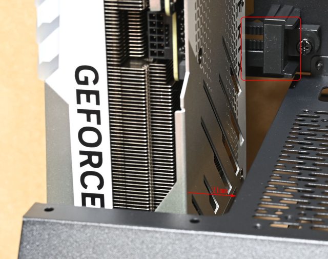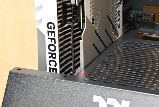 ,顯示卡頂端與電源艙開口的前端邊緣距離21mm