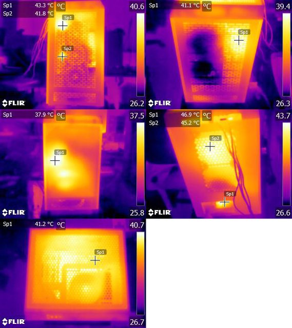 ▼CPU+GPU高負載30分鐘後的左側(左上)、右側(右上)、正面(左)、後方(右)、頂部(左下