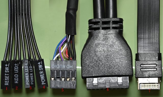 開關接頭,5為耳機麥克風插座接頭,6為USB3.2 Type-A主機板接頭,7為USB3.2 Type-C