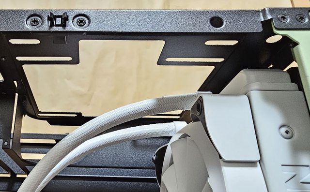 ▼不過水冷排螺絲鎖點無法對上右側風扇/水冷排固定架長條形固定孔