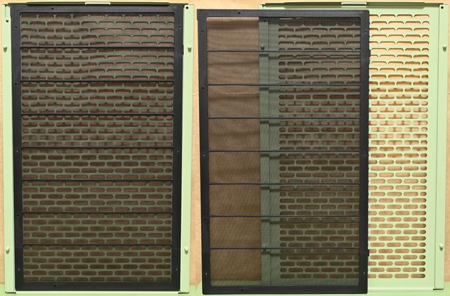 左側板上方/下方、右側板上方/下方的網孔板內部配置可拆式過濾網