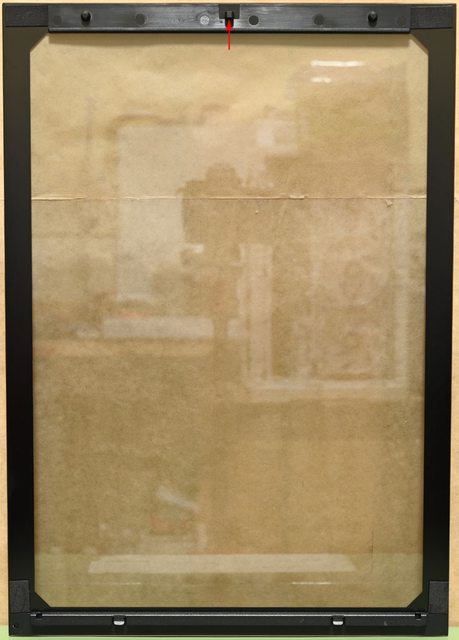 ▼正面強化玻璃背面,上緣塑膠條有押扣(紅色箭頭),下緣金屬條有插入式固定架