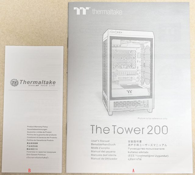 ▼隨附文件有安裝說明書(A)及保證書(B)