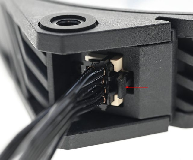 ▼水冷頭控制線路的可拆卸式接頭接出1條長度44公分的IMF70-ARGB風扇供電4pin線路及1