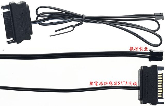 步線(R)、燈光控制盒SATA電源線(S)、燈光控制盒(T)