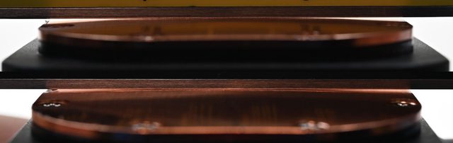 ▼組合風扇及水冷頭時,風扇基座底部4個圓弧凸出部分要插入水冷頭頂部的4個圓弧溝槽