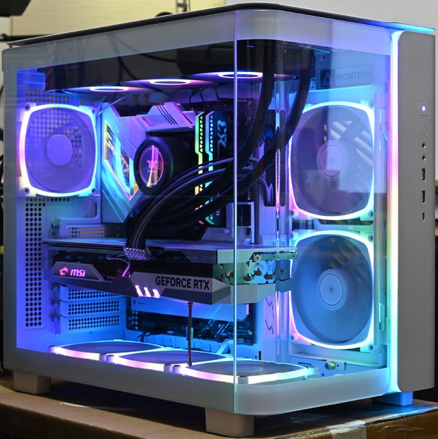▼正面安裝網孔板及加裝2個白色款AX140 PWM風扇時的正面燈光照明效果