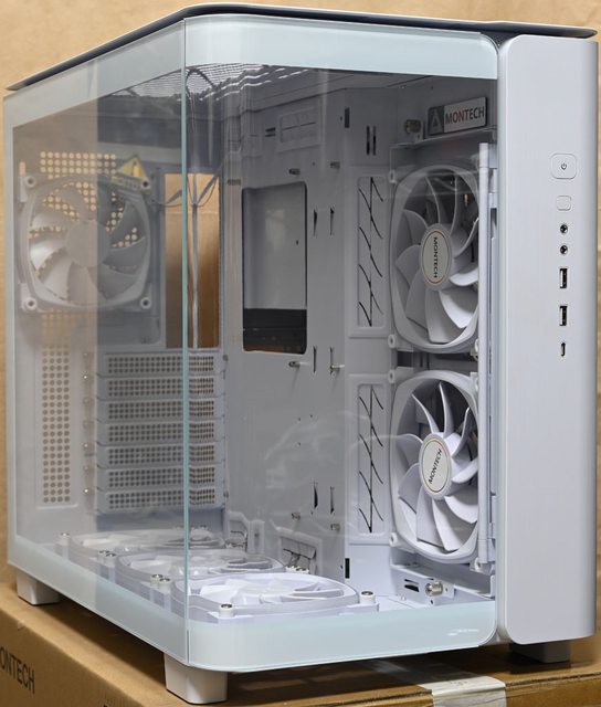 ,右艙風扇/2.5吋蓋板可額外提供2個風扇安裝空間(最多11個風扇)。右側前方預裝2個白