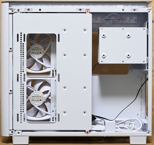 色款RX140 PWM反向風扇,底部預裝3個白色款RX120 PWM反向風扇,後方預裝1個白色款