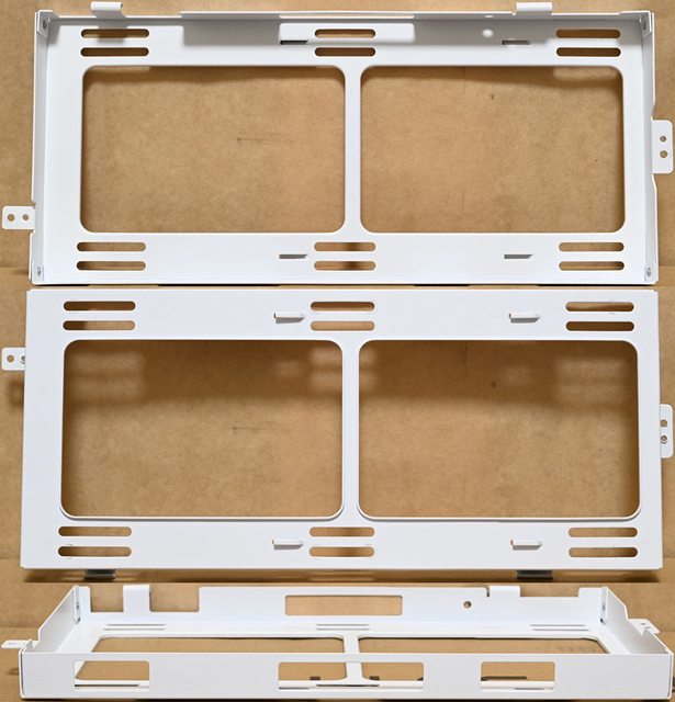 ●正面圓弧角強化玻璃面板、正面網孔板、左艙強化玻璃側板、頂部通風蓋板、右艙通風
