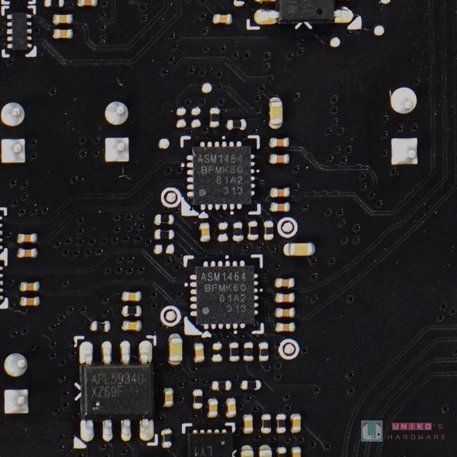 另外 2 顆 ASMEDIA ASM 1464 USB 5Gbps 中繼器,負責後置 2 個 USB 5Gbps TYPE-A 的訊