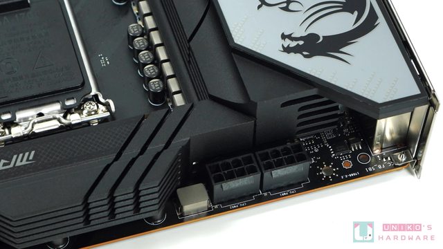CPU 供電採用 2 組 EPS 8-PIN 作為 12V 輸入,微星加入 SOLID PIN 實心針腳設計,加強