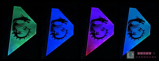 散熱片上方的鏡面就變身成 RGB 光效大展身手的區塊,黑色龍魂如同大搞逆光照風格。