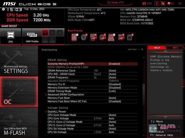 BIOS 的設定也相當簡單,基本上就是打開 XMP DDR5-7200,CPU Cooler Tuning 處理器散