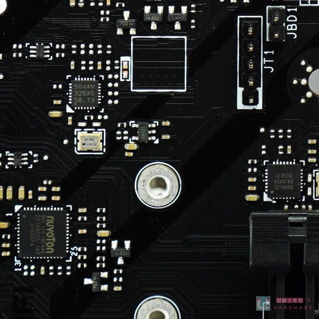 NUVOTON NCT6687D-M SUPER I/O 晶片,管理多項電壓、風扇、溫度等即時的資訊監測。