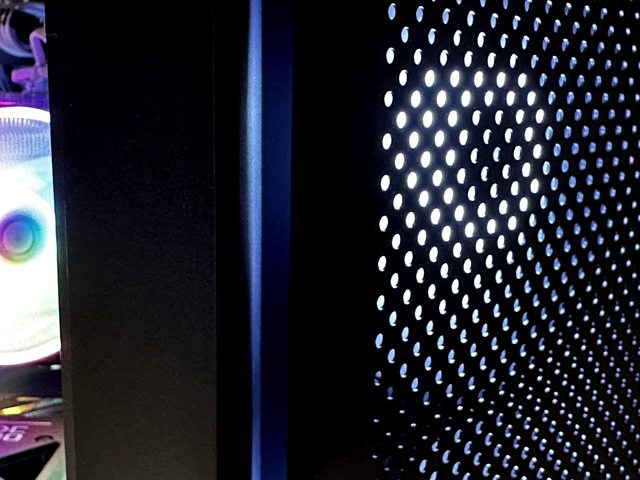 完成裝機後通電,簡單比較一下有無裝玻璃側板的差異,玻璃側板採用前上方的布標籤作