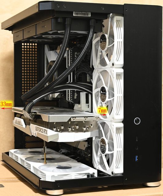 ○頂部/右側前方/底部可裝最多9個120mm風扇,頂部可裝280/360mm一體式水冷散熱排,