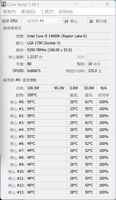 進一步超頻至5.4G持續拷打 - 14600K 功耗219W