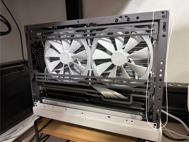 因為我不想要風扇吃顯卡廢熱所以用的是風扇在外往內吹的方式,從上往內看也還有一些