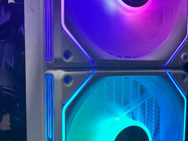 G24的風扇燈效有3處,軸承周圍、扇葉周圍八角形、風扇框左右側。以燈珠數量來說燈效