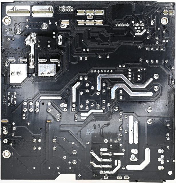 導至外殼協助散熱,焊點整體做工良好,部分區域線路有敷錫