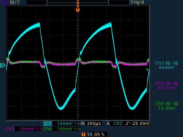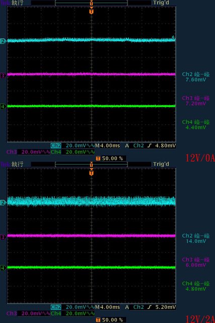 波分別為16.8mV/13.2mV/18mV,於純12V全負載輸出下12V/5V/3.3V各路低頻漣波分別為