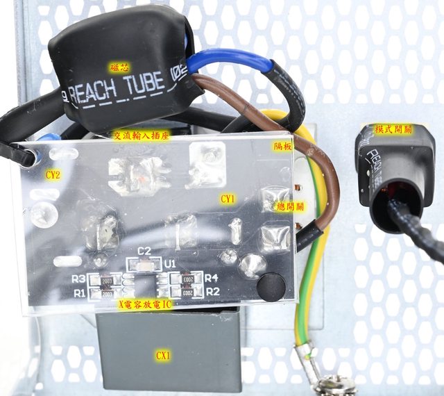 模式開關線路/主電路板保險絲有包覆套管,突波吸收器沒有包覆套管