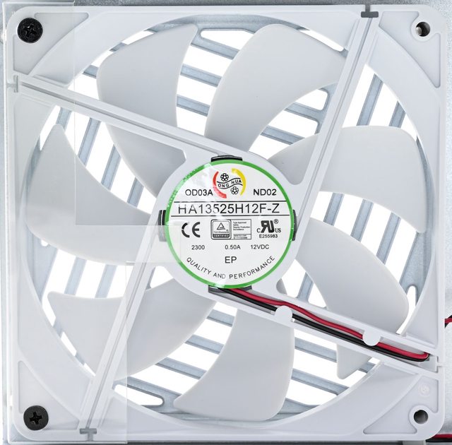 ○大孔徑風扇護網直接沖壓在外殼上,具備Hybrid Silent Fan Control功能,開啟後於