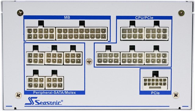 ▼模組化線組輸出插座有名稱標示,左下方有Seasonic商標