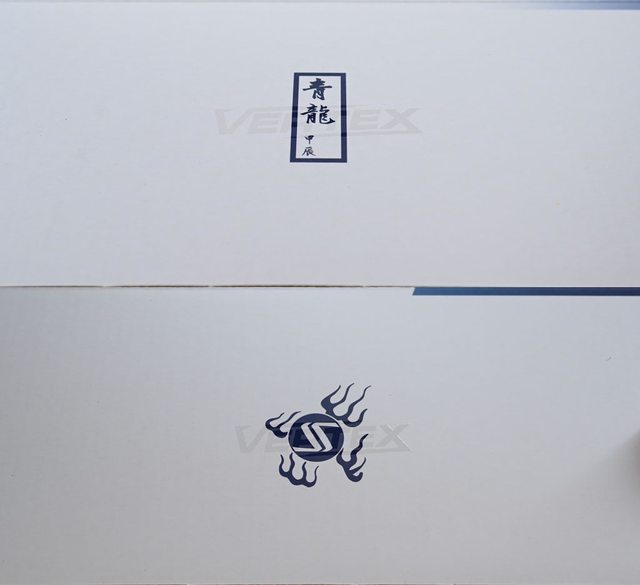 ▼外盒上側面有Seasonic商標、雙龍戲珠圖、龍字樣、VERTEX標誌、青龍甲辰落款、龍圖