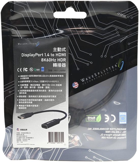 威世波 WaveSplitter 主動式DisplayPort 1.4 to HDMI 8K60Hz HDR轉接器開箱