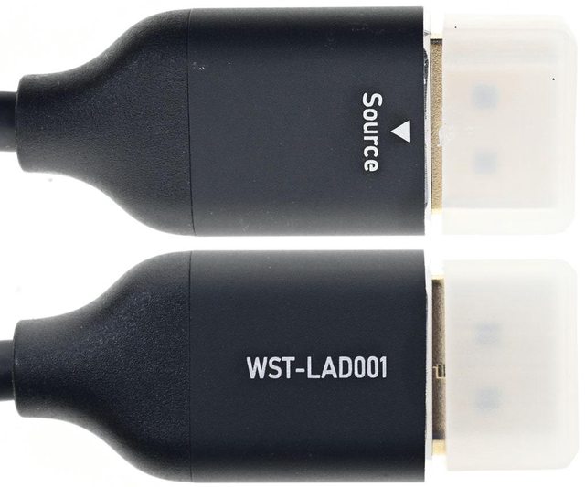 一面有型號,具備一體式SR護套,DisplayPort公頭有裝上保護蓋