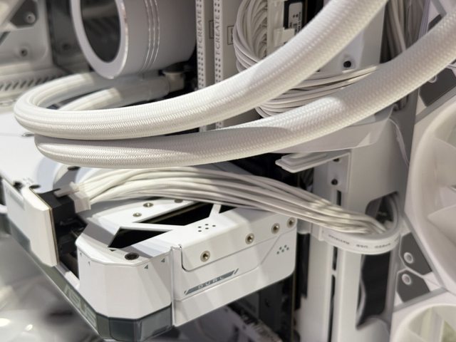 在雙艙結構機殼內,顯示卡線也是一個較難忽視的存在,傳統的底部走線因為少了電源艙