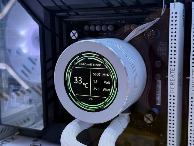 安裝專用軟體後,水冷螢幕預設置值是顯示CPU各項資訊及溫度。