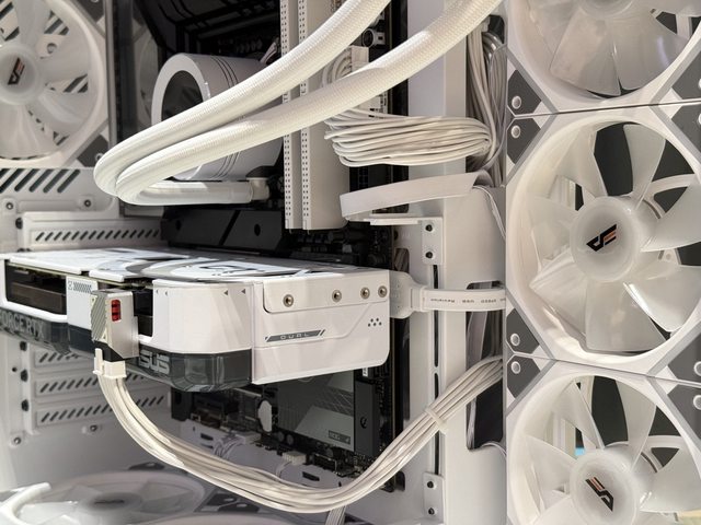 的支撐線材可能會垂垂,為了改善外觀個人改用180度轉接頭讓線材從顯示卡背板上方走