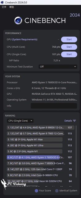 這次除了測試六核心十二執行緒 (6 Cores 12 Threads) 的 AMD Ryzen 5 7600X3D 外,