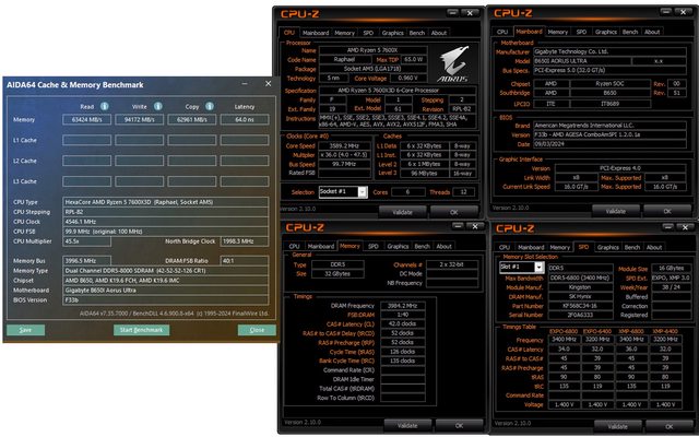 這次搭配 7600X3D 測試的記憶體使用 Kingston FURY Beast DDR5 RGB 2X16GB 6800 MT/