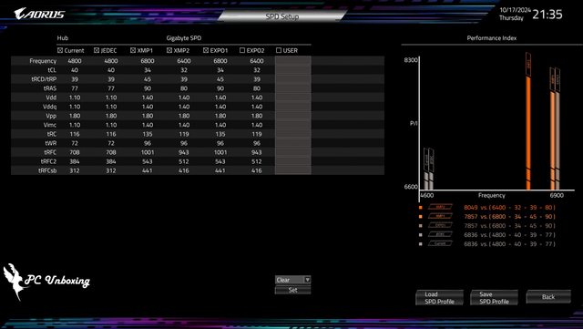 Profile 1 為 6800MT/s 34-45-45-90 1.4V。