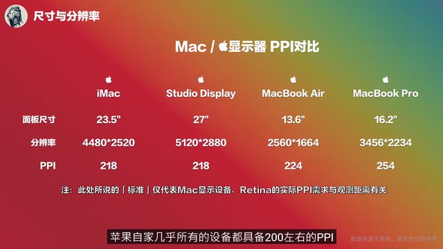 在蘋果上就比較單純,自家的產品 PPI 都大於 200
