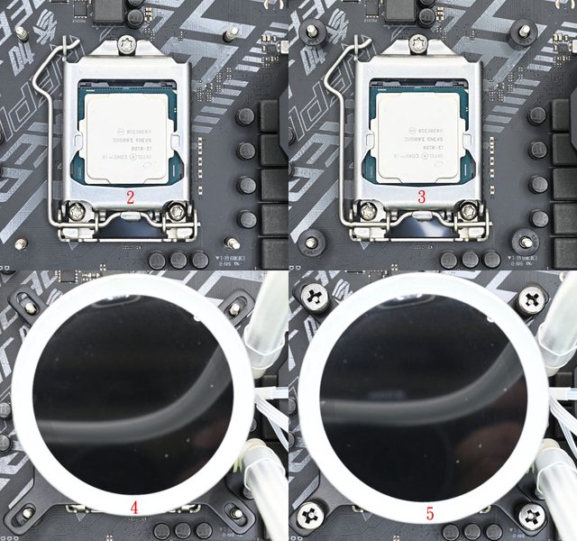 LGA1200/115x黑色套管套入固定螺柱(3)。安裝水冷頭前先確認水管接頭不會與主機板元