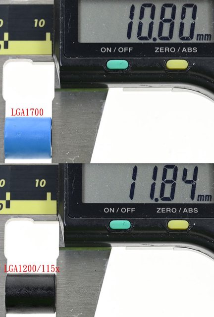 ▼LGA1700藍色套管長度10.8mm(上),LGA1200/115x黑色套管長度11.8mm(下)