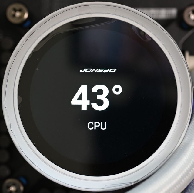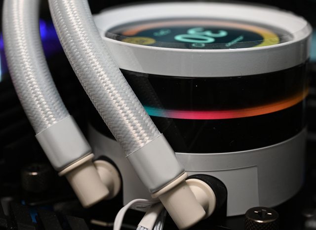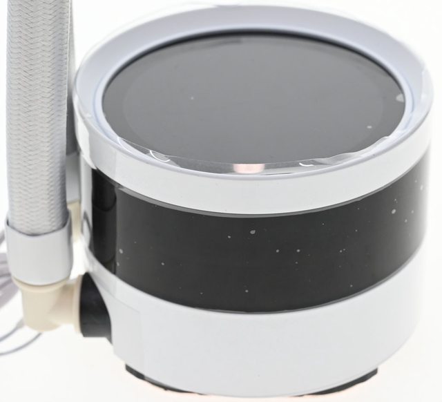 ●圓柱形水冷頭頂部有霧面ARGB光圈及2.1吋圓形IPS全彩廣角螢幕,最高亮度600尼特,