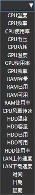 )、文字(最多2種內容,可定義顏色)、數據(最多5種監控數據,可定義顏色)、單位(最多