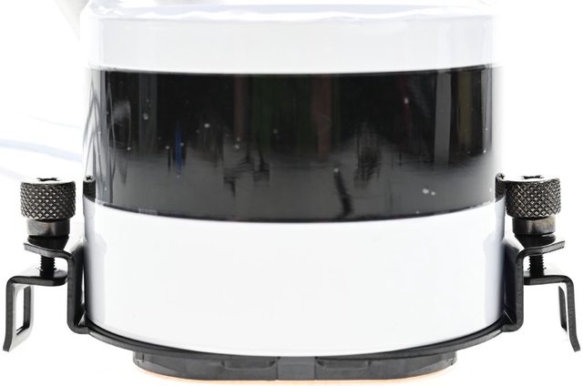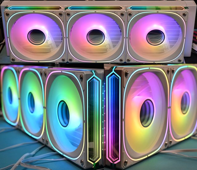 ▼水冷排搭配JONSBO喬思伯FR505白色全幅式無限鏡風扇燈光效果