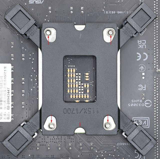 準處理器扣具底板3個螺絲鎖點位置(紅色箭頭)
